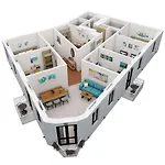 Obiekt posiada balkon i miejsce do siedzenia z TV i telewizją wielokanałową, a także udogodnienia takie jak żelazko z deską do prasowania i klimatyzacja. Oprócz sofy, we wnętrzu znajduje się również okna dźwiękoszczelne. Obiekt noclegowy oferuje 5 sypialń z poduszkami antyalergicznymi miękkimi lub twardymi. W obiekcie noclegowym leży 3 łazienki z kabiną prysznicową walk-in, oddzielną toaletą i wanną. W łazience znajdują się suszarka do włosów, ręczniki i kapcie.